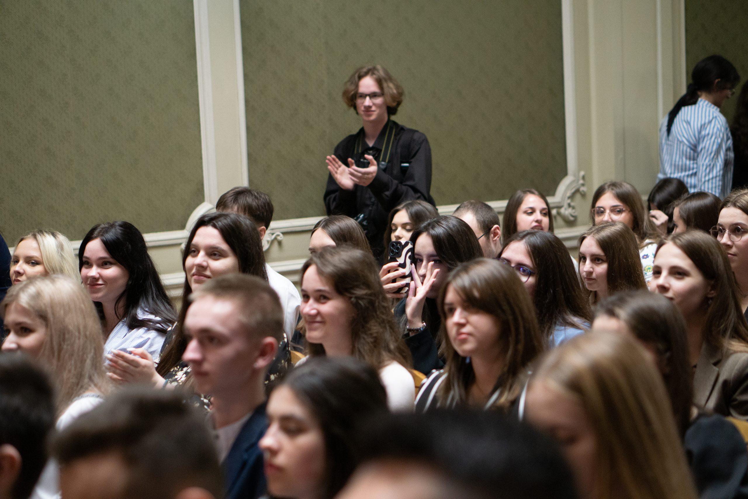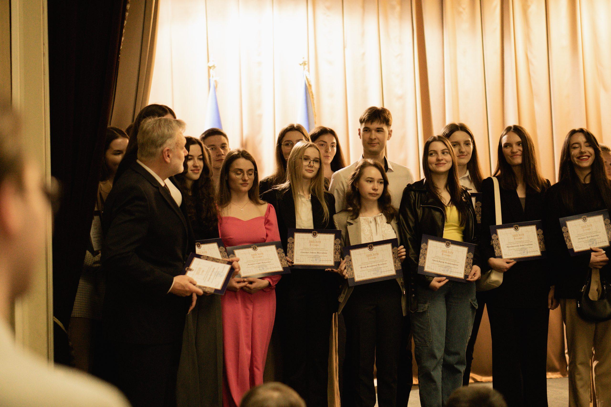 Зустріч розпочалась із виступу Народного камерного оркестру Львівського університету після якого відбулося урочисте вручення дипломів переможцям І туру Всеукраїнського конкурсу студентських наукових робіт та нагородження преміями й подяками студентів та аспірантів, що займаються активною науковою роботою та розбудовою Наукових товариств своїх факультетів.